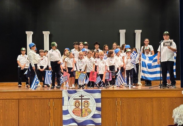 On October 27th, Greek School proudly celebrated OXI Day with a special program in Dombalis Hall for their families followed by a small reception. Students marched in waving their Greek flags and donning Greek or Italian army helmets—there were even a few adorable mustaches in the crowd!